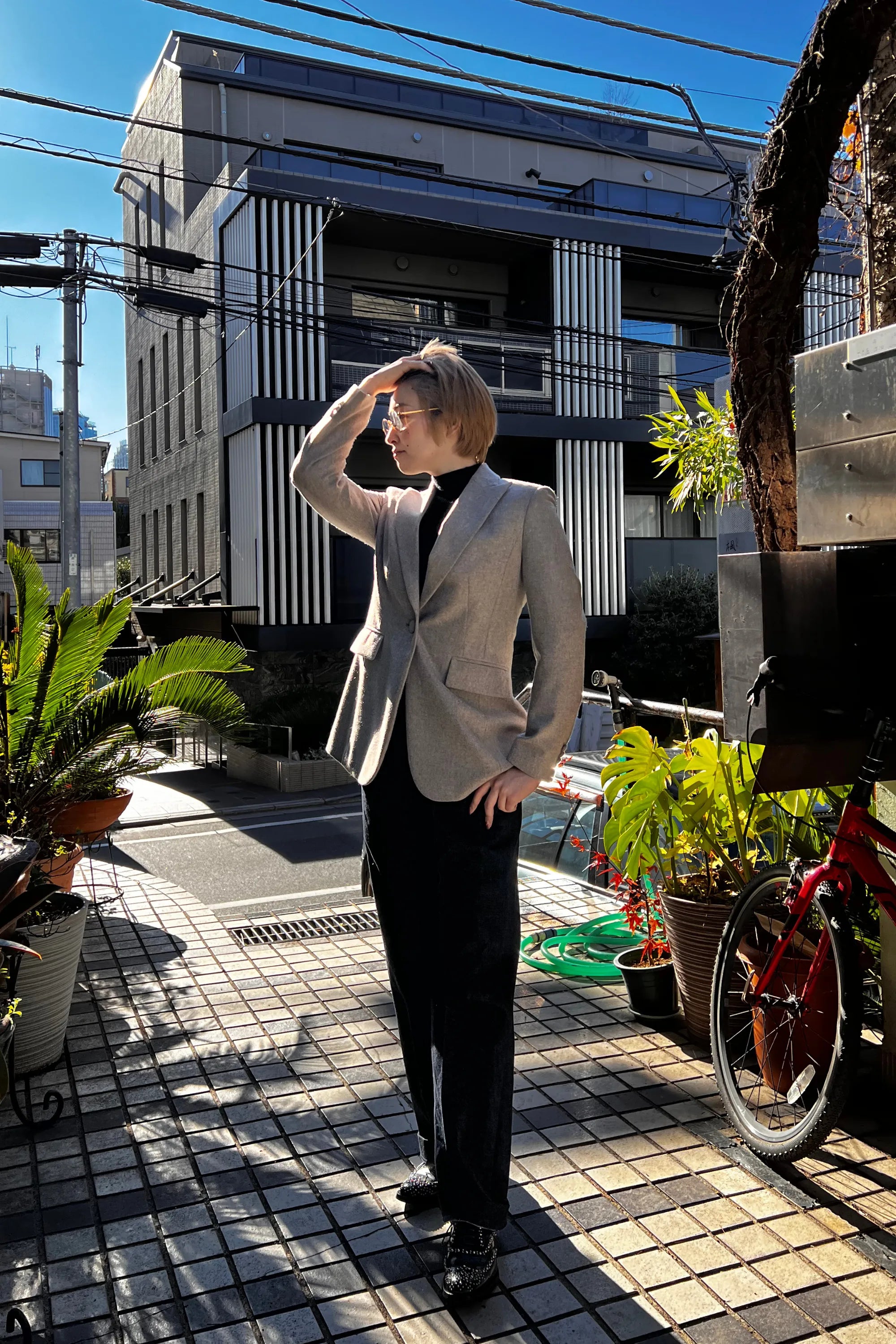 今らしさと量感のあるワイドシルエットでありつつ、端正さは崩さず品の良いスラックスです。